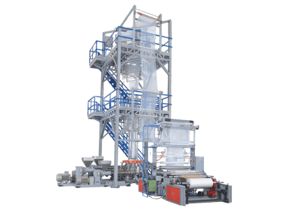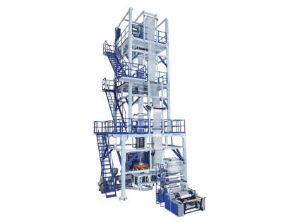 富隆的多層押出機,可根據客戶所使用的原料及最終產品應用,來進行客製化服務,此款機型可以同時使用多種原料,在原料的混合及輸送上,需要使用特殊的流道設計,讓原料能夠完整地通過而不含任何殘留,而隨著市場的趨勢變化及吹膜產業的轉型,亦可透過添加回收料及色母等,來降低原料的消耗。